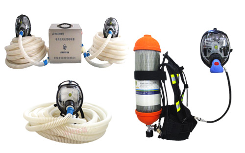 長管呼吸器由全面罩、腰帶、長管、送風機組成;空氣呼吸器由面罩、氣瓶、肩帶、報警哨、壓力表、氣瓶閥、減壓器、背托、供給閥等組成。