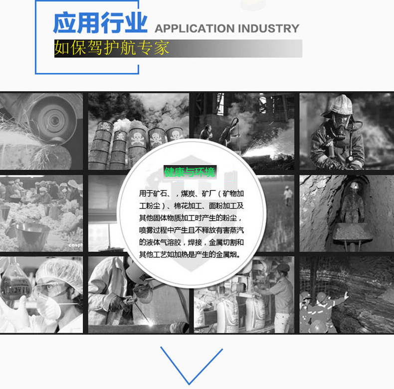 選用推薦:適用于霧霾,面粉加工廠,礦廠(礦物加工粉塵),棉花加工,五金鑄造,汽車尾氣中產(chǎn)生的粉塵和部分有毒氣體環(huán)境可選用濾棉搭配濾毒盒進(jìn)行防護(hù)