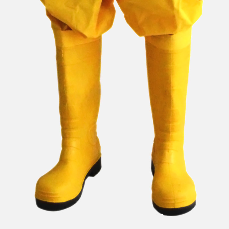 3. 配備專業(yè)防化靴 深花紋防滑耐磨鞋底 便于行走操作 優(yōu)質(zhì)PVC,耐酸堿防油污 鞋面:PVC+特種材料 鞋底材料:PVC+丁晴橡膠 防化靴身厚度達(dá)3毫米,隔熱性能優(yōu)異